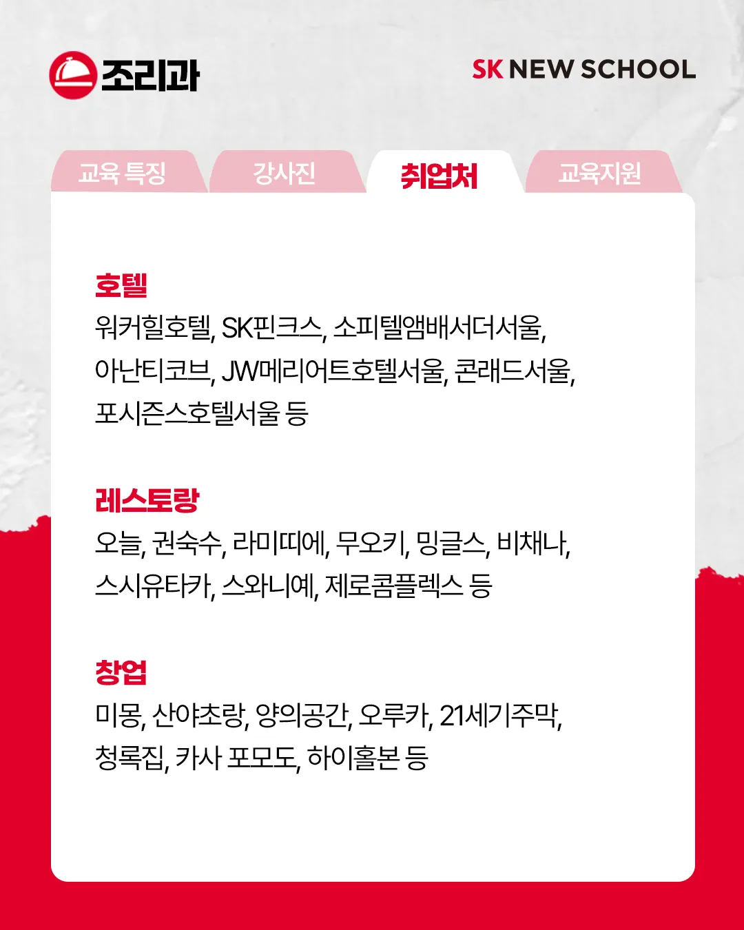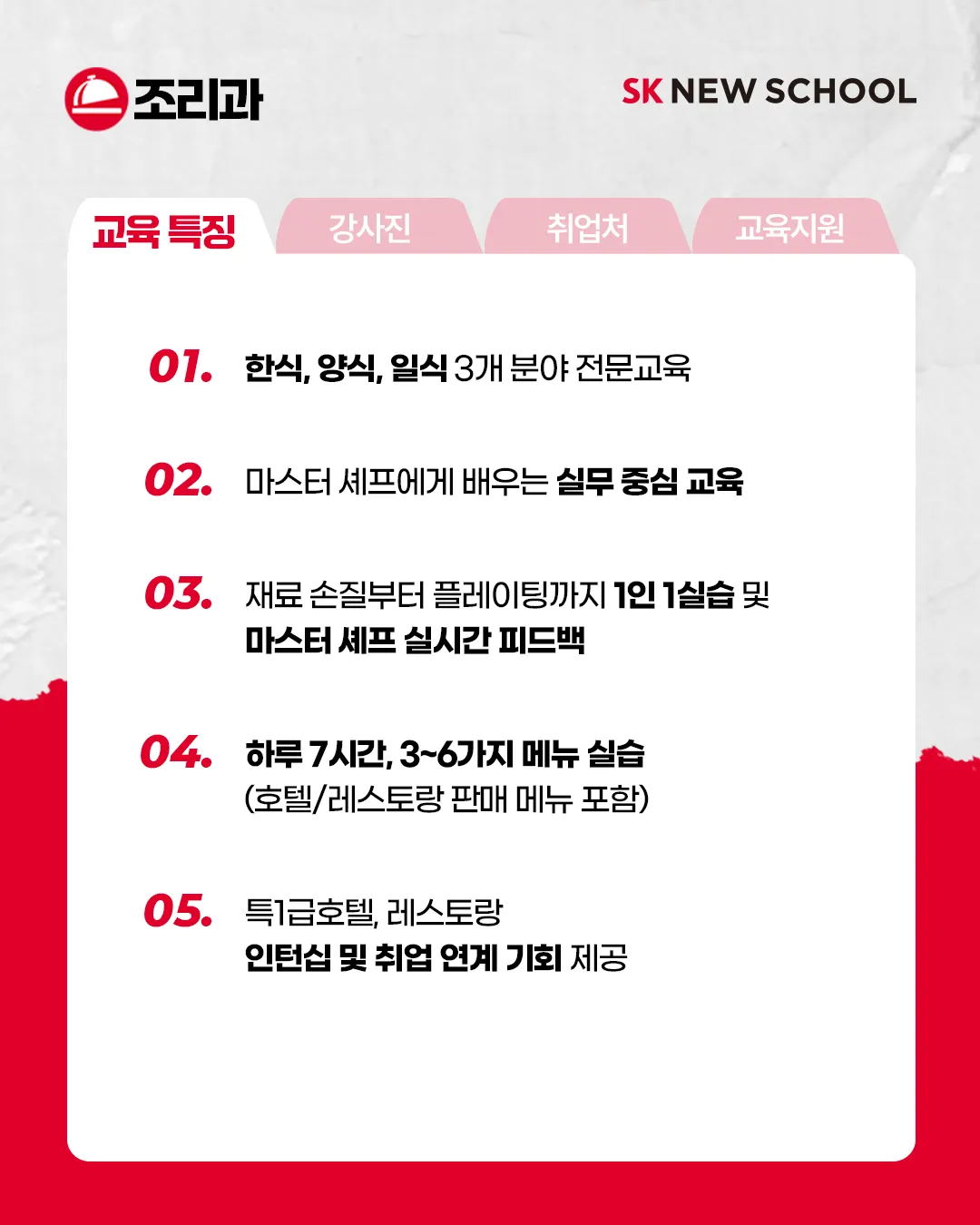 ์ ๋ชจ์ง๐ฝ โ ๐๋ชจ์ง๊ธฐ๊ฐ 2023.12.1~12.14 โ ๐ฝ์กฐ๋ฆฌ๊ณผ ๊ต์ก ํน์ง 1๏ธโฃํ์, ์์, ์ผ์ 3๊ฐ ๋ถ์ผ ์ ๋ฌธ ๊ต์ก 2๏ธโฃ๋ง์คํฐ ์